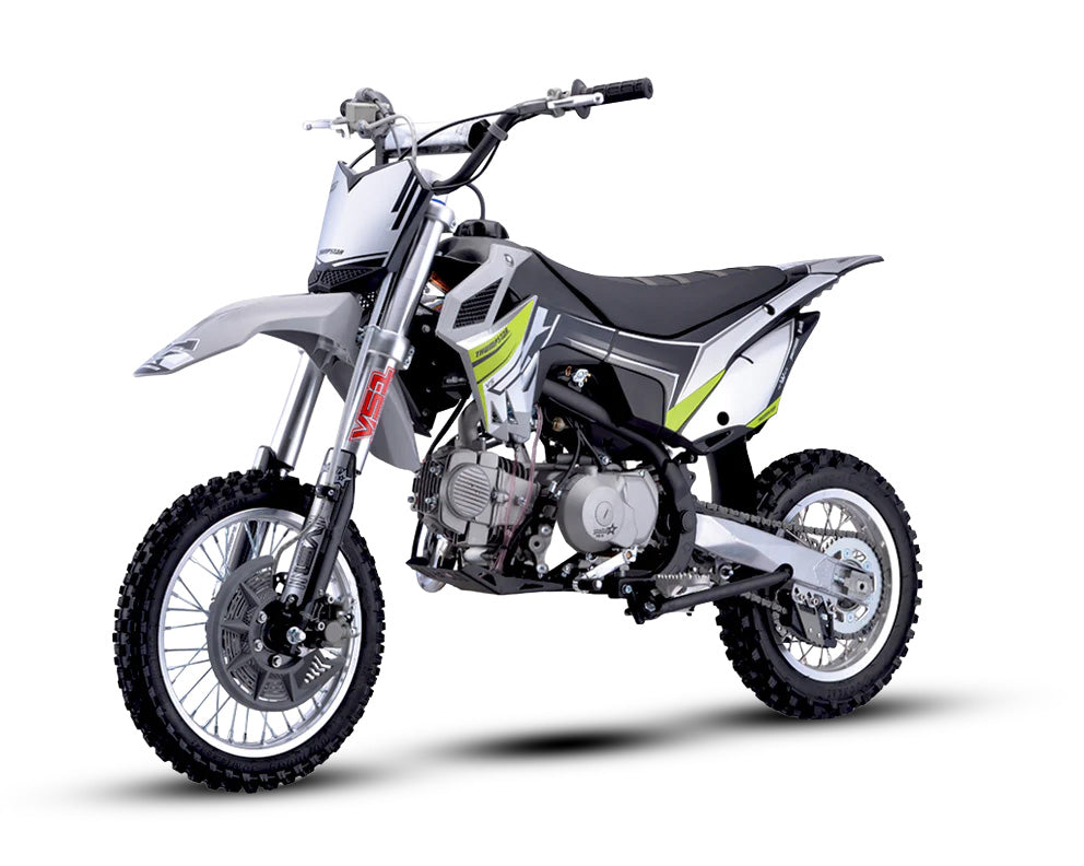 The new TSB 110cc is gearing up in style with all the looks of the bigger motocross bikes but designed for kids, beginner riders, and we all know experienced adults also love riding this model. TSB 110 has a seat height of 710mm and 4-speed semi-automatic gearbox which are similar specifcations to its competitors (TTR110, CRF110, KLX110, DRZ110), your little ones will fill all in laughter and smiles. Highlighted with special features including Stripe Gripper Seat and AK-7 Alloy Rim this bike allows your teens to have fun and enjoy their new motorcycle. Although it has a kick start, it still is very easy to start. So kick it over and surf the dirt away.