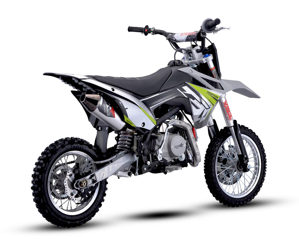 The new line of TSX bikes have received yet another significant upgrade which brings performance closer to that of full-size motorcycles, rear linkage. Rather than traditionally attaching the shock to the top of the swingarm, we have scaled and applied linkage shared with the likes of full-size race bikes to attach to the bottom of the swingarm. This improves handling in the rear and completely changes the riding experience of these bikes.